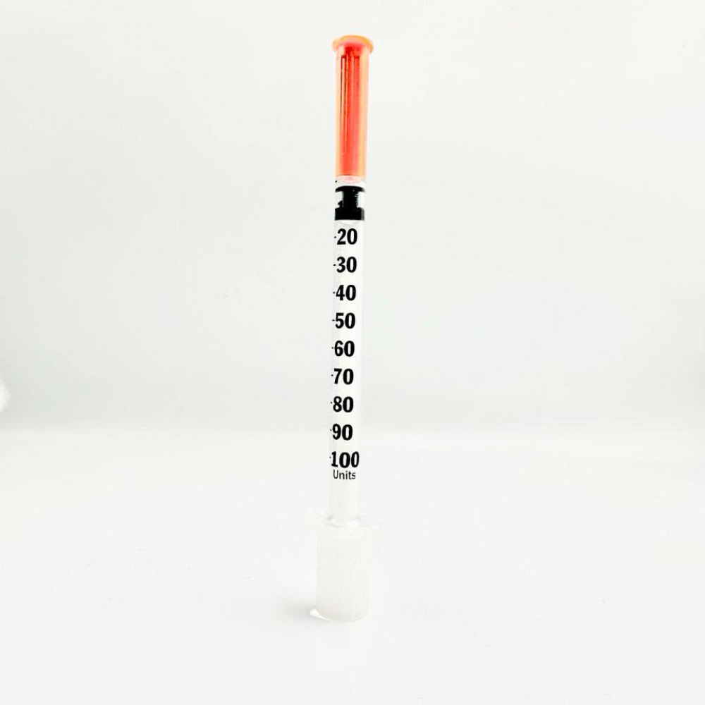 This insulin syringe is designed for precise and accurate dosing, with clear unit markings up to 100 units. It is commonly used for peptide, HCG, and other injectable compounds where controlled measurement is essential.
